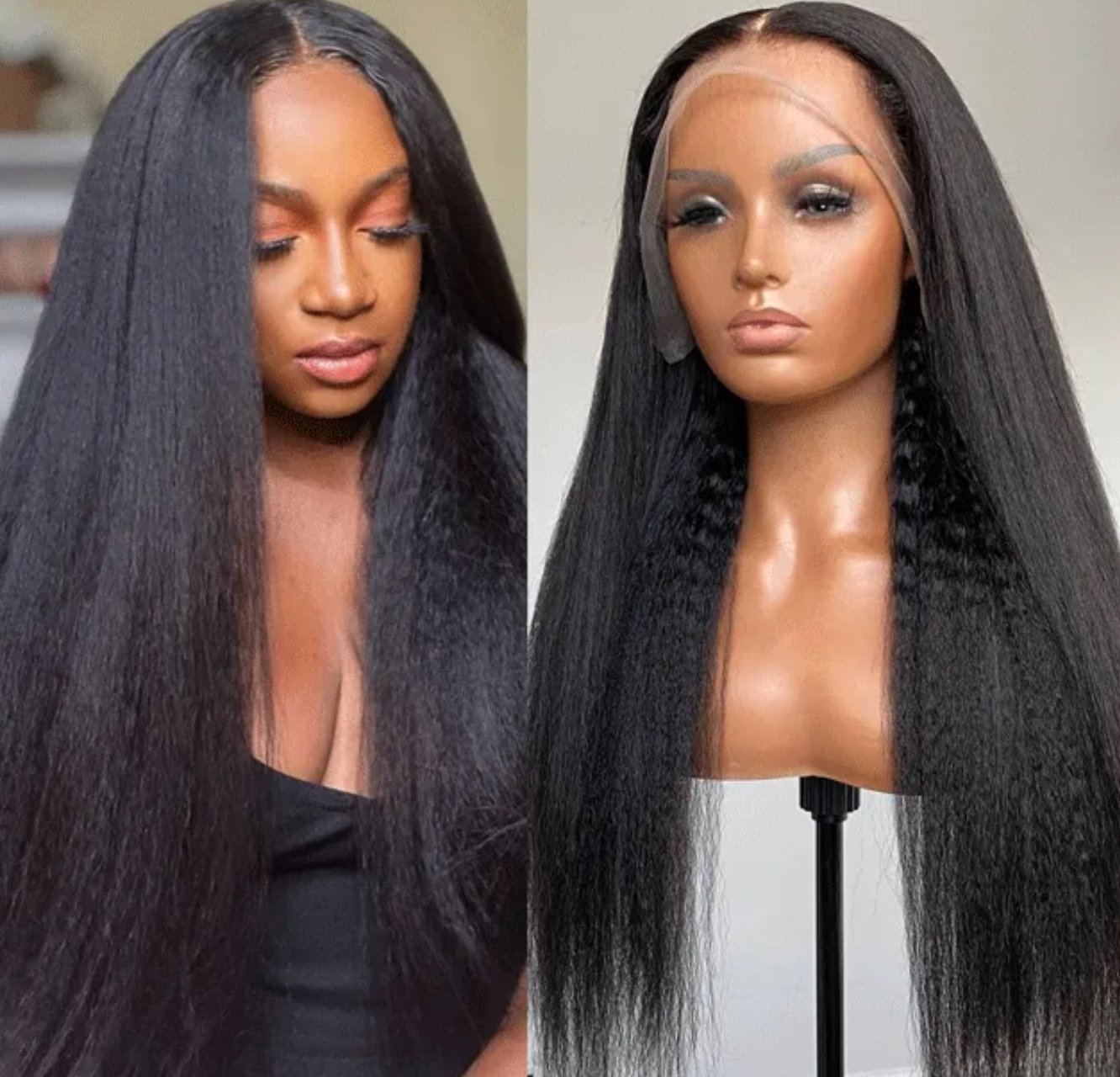 Kinky Straight Frontal Wig Bleached Knots- 13x4
